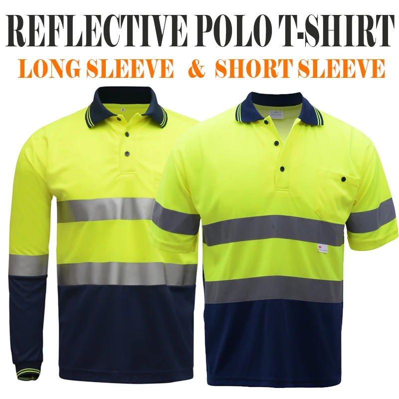 شراءمعلومات اضافية السلامة عاكس بولو قميص أصفر والبحرية لونين العمل قميصا طويل الأكمام قصيرة الأكمام مع شرائط عاكسة