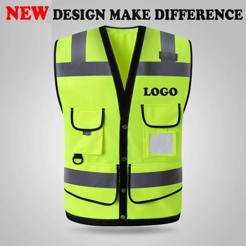 استعارات ل SPARDWEAR عالية سترة أمان عاكسة للرؤية صدرية رجالي مع MULTI-POCKETS شعار الشاشة الحريرية الطباعة شحن مجاني