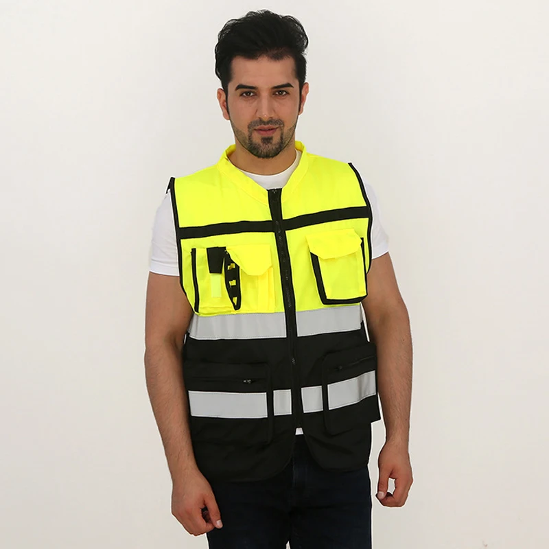 صور ل دروبشيبينغ سلامة الملابس متعددة جيب سستة عالية سترة عاكسة سلامة العمل الملابس