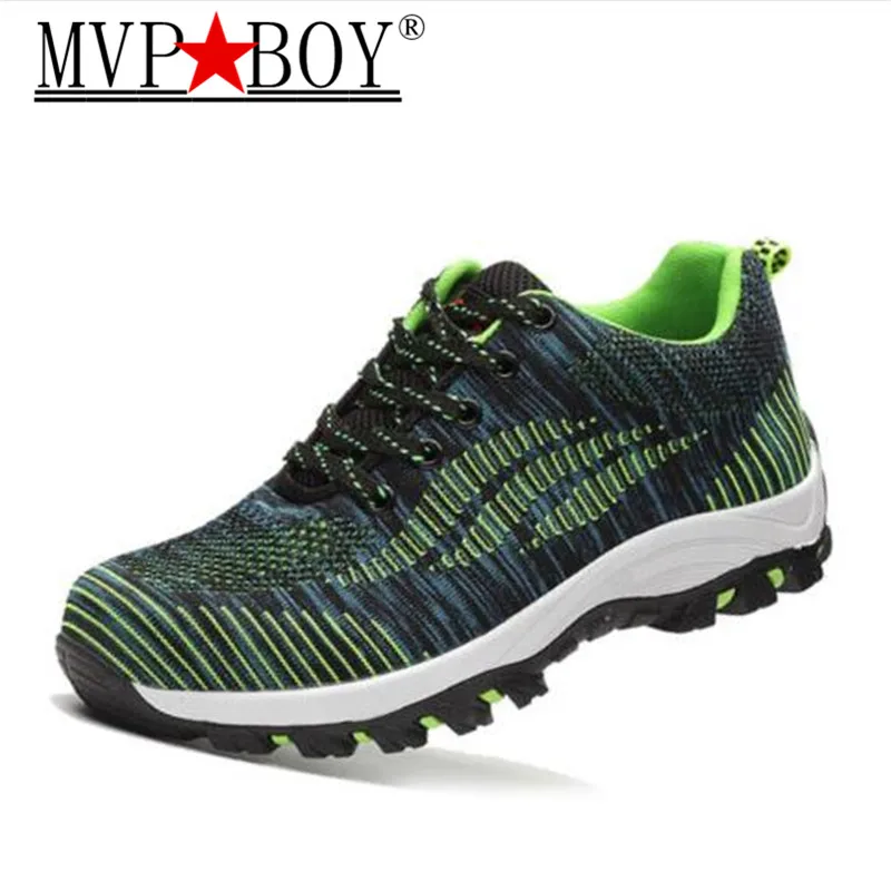 أرغب في شراءمعلومات اضافية MVP BOY الرجال عارضة أحذية السلامة الربيع شبكة الدانتيل يصل الصلب اصبع القدم الأحذية الرجال ثقب واقية التأمين العاملة تنيس العمل الأحذية رجل